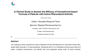 New York, NY – January 7, 2025 – Raphael Pharmaceutical Inc. (“Raphael Pharmaceutical” or the “Company”) (OTCQB: RAPH), a clinical-stage biotechnology company advancing a novel cannabinoid-based research platform, today announced positive proof-of-concept clinical study results for the Company’s formula, for the management of rheumatoid arthritis (“RA”). Citruslabs, a leading contract research organization, successfully completed this proof-of-concept clinical study in the United States under Institutional Review Board (“IRB”) approval and in compliance with U.S. Food and Drug Administration (“FDA”)
